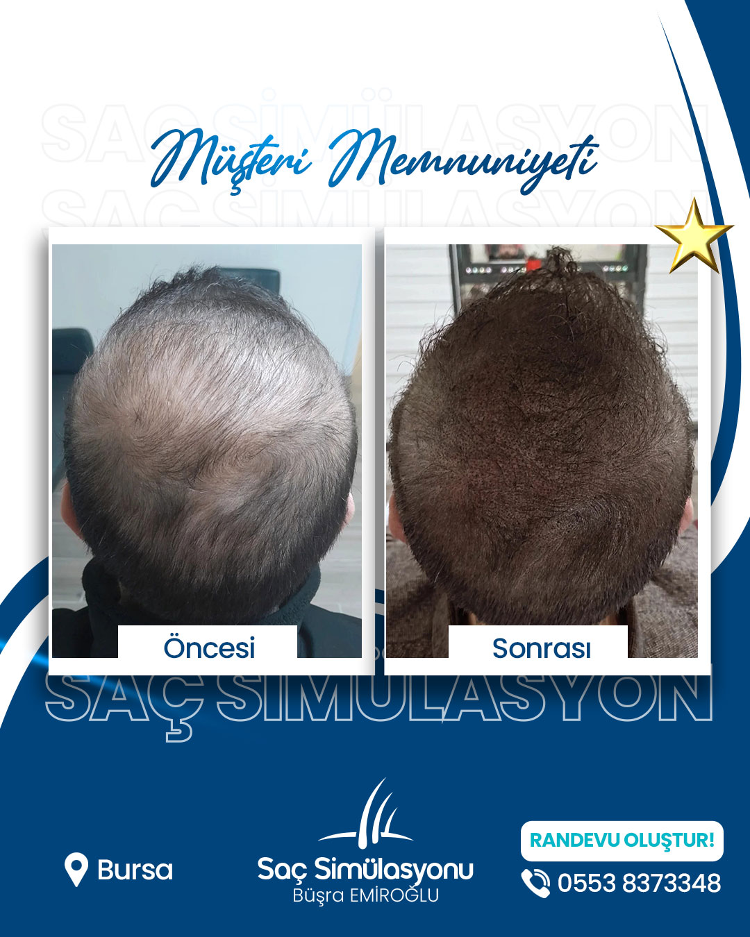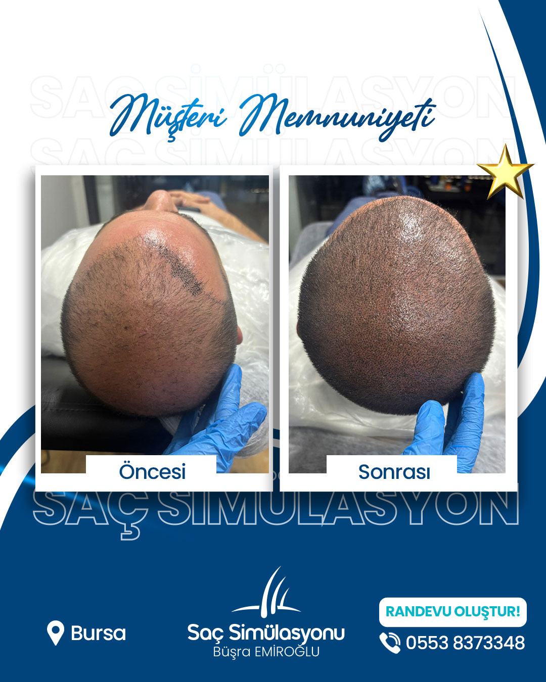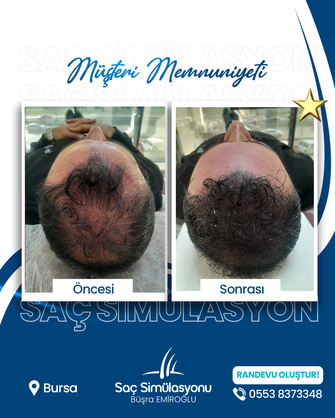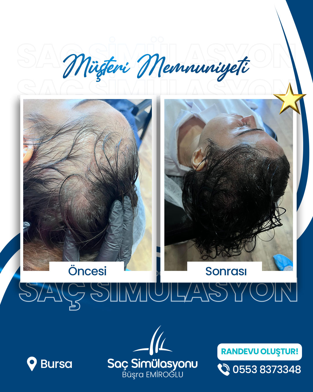 Saç simülasyonu ortalama 2–4 saat sürer. Yoğunluk ihtiyacına göre seans sayısı değişebilir.