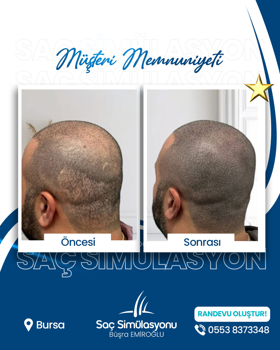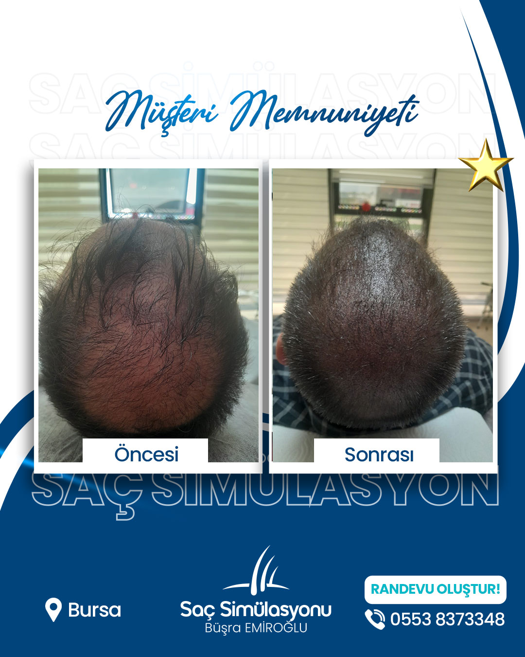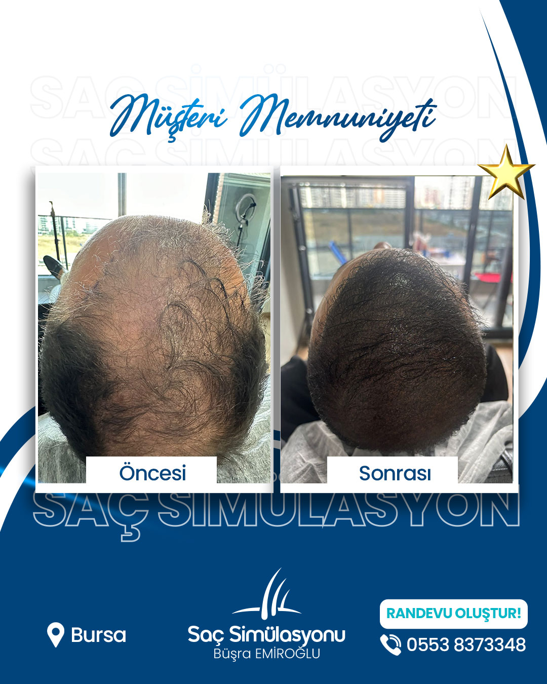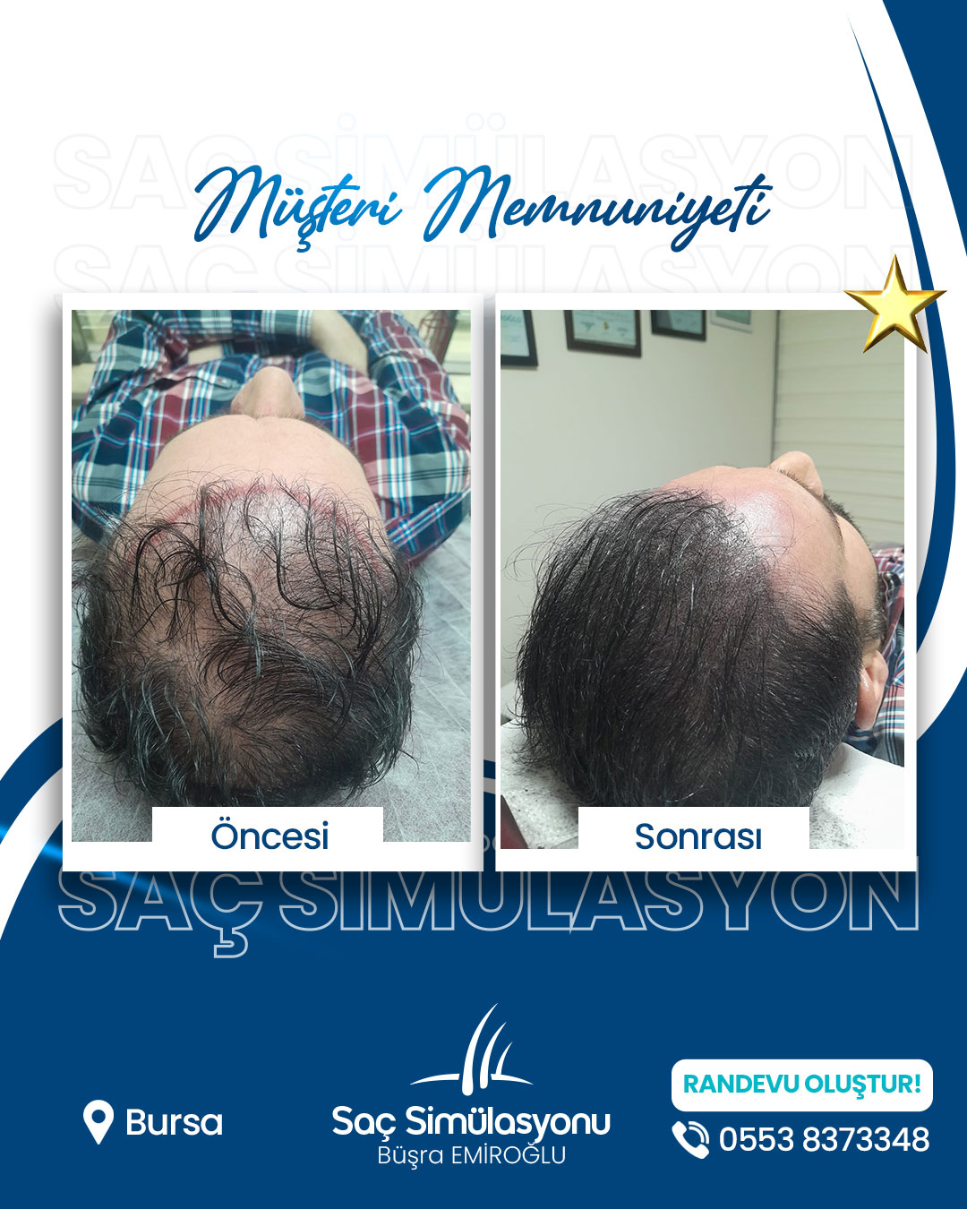 Saç simülasyonu ortalama 2–4 saat sürer. Yoğunluk ihtiyacına göre seans sayısı değişebilir.